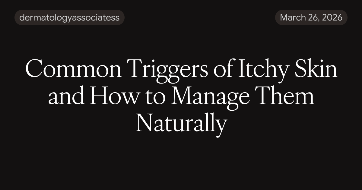 Click Here- https://paragraph.com/@dermatologyassociatess/common-triggers-of-itchy-skin-and-how-to-manage-them-naturallyCommon Triggers of Itchy Skin and How to Manage Them Naturally Discover the common triggers of itchy skin and learn natural, dermatologist-approved ways to soothe irritation, reduce flare-ups, and maintain healthy, comfortable skin every day. Read more! Click Here- https://paragraph.com/@dermatologyassociatess/common-triggers-of-itchy-skin-and-how-to-manage-them-naturally0 Comments ·0 Shares ·98 Views